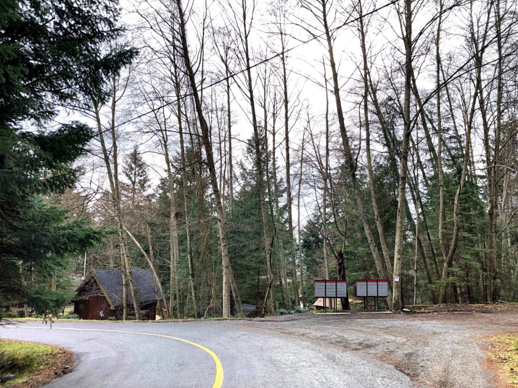 Continue walking north along Taylor Road and enjoy the beautiful foliage, cliffs and peek-a-boo views. Just be aware of light traffic as there are no sidewalks.