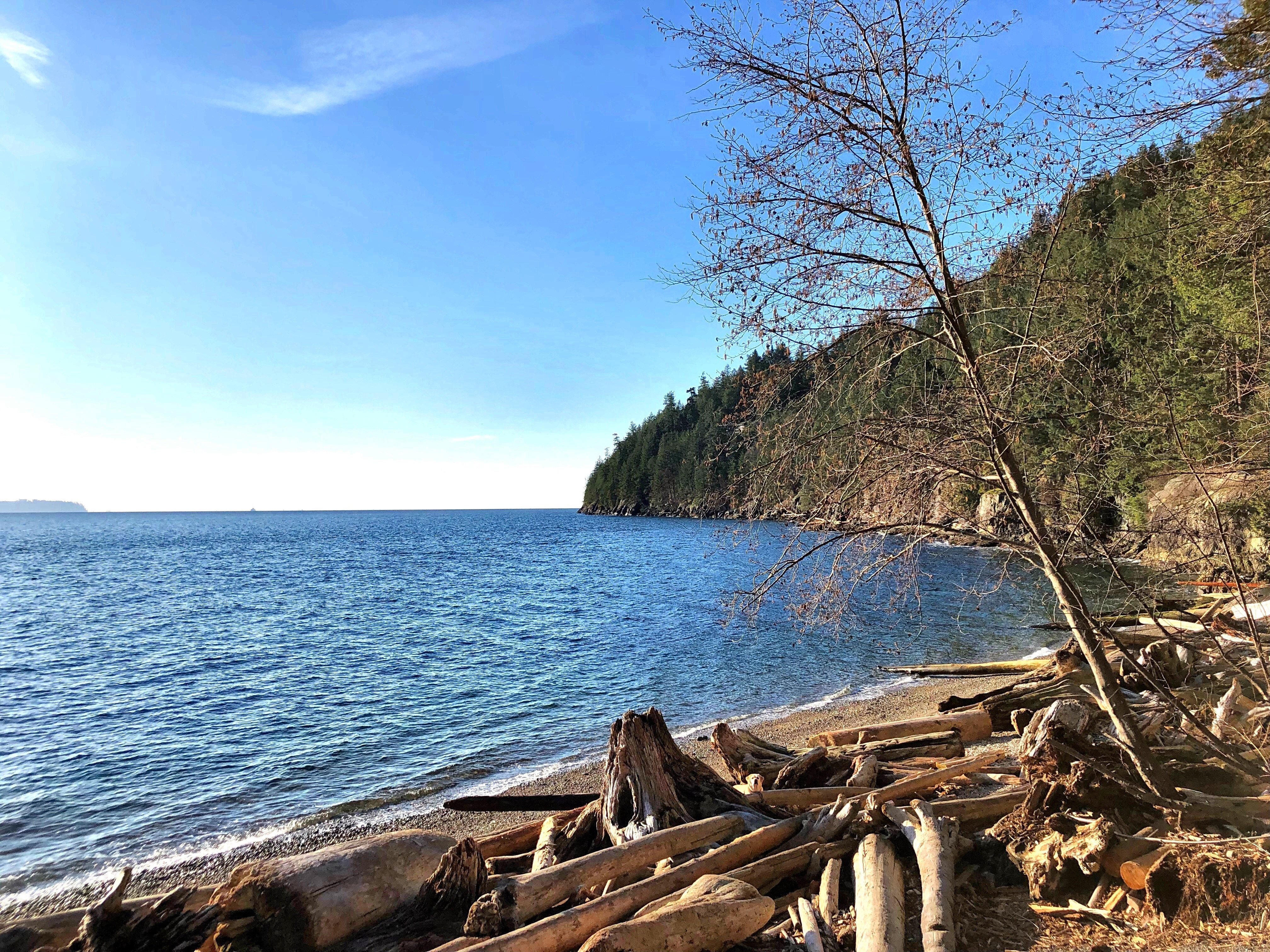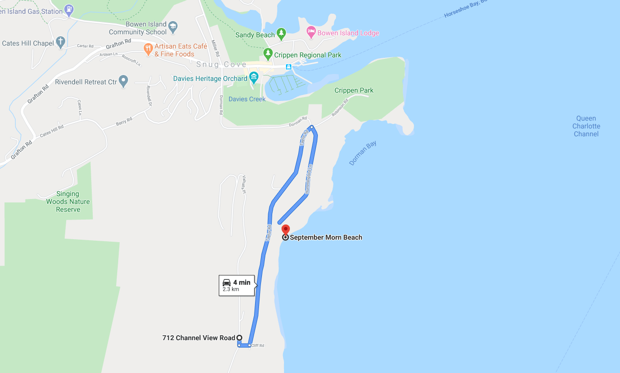 September Morn beach faces south and east and provides stunning panoramic views of West Vancouver, the North Shore Coastal Mountains and BC Ferries passing by.
