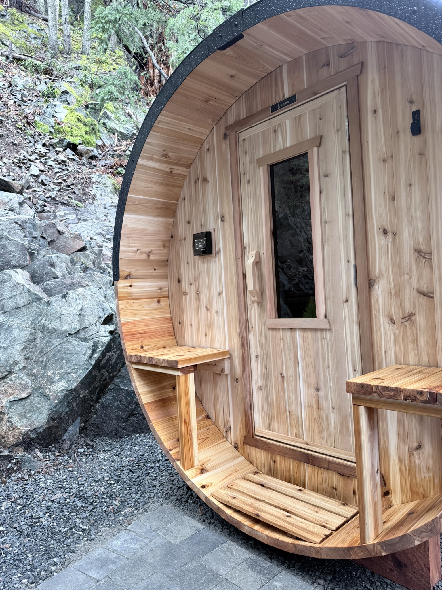 Nootka saunas are designed and built right here in the Pacific Northwest. They use local Western Red Cedar, making them perfectly acclimated to the humidity and climate of Bowen Island.