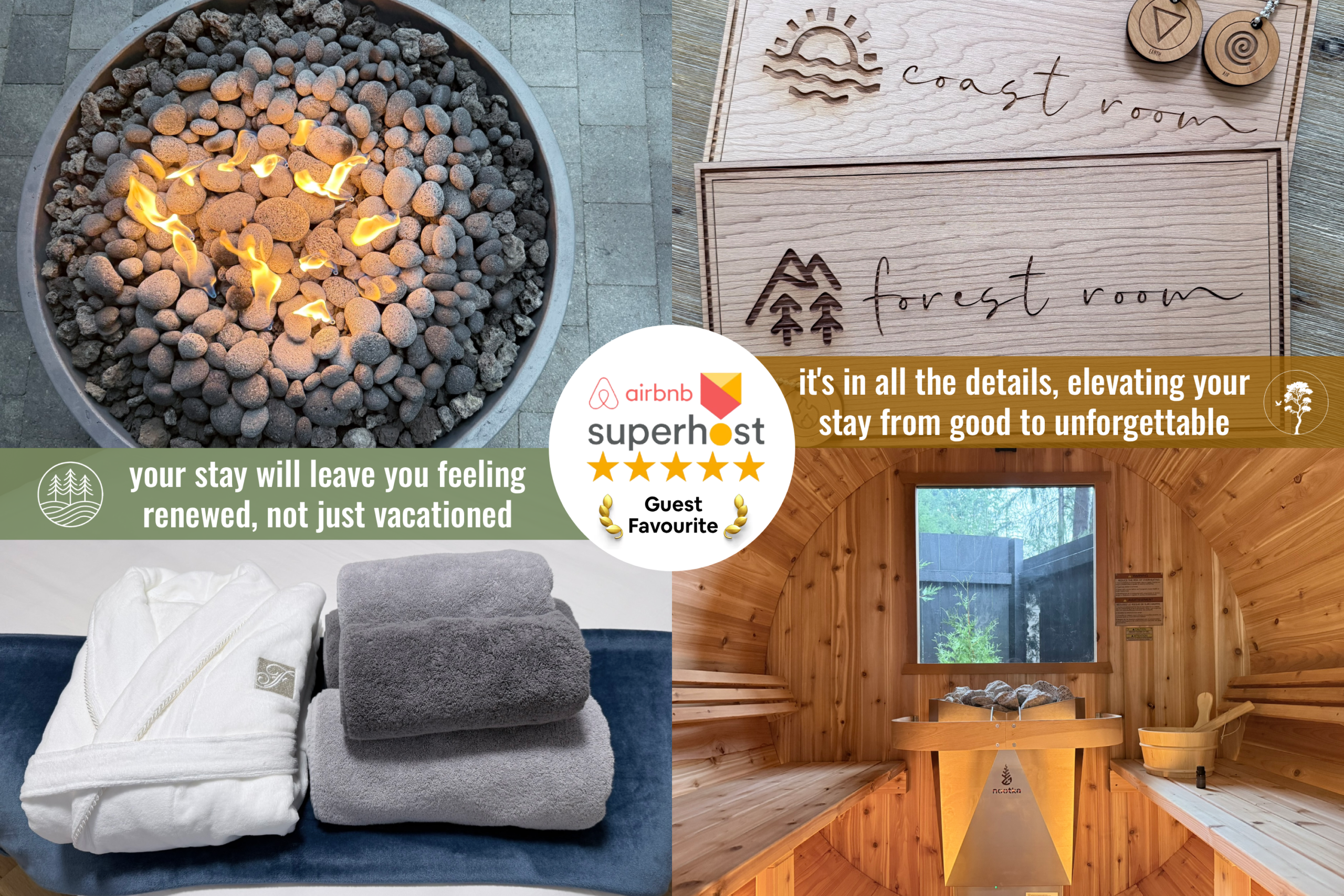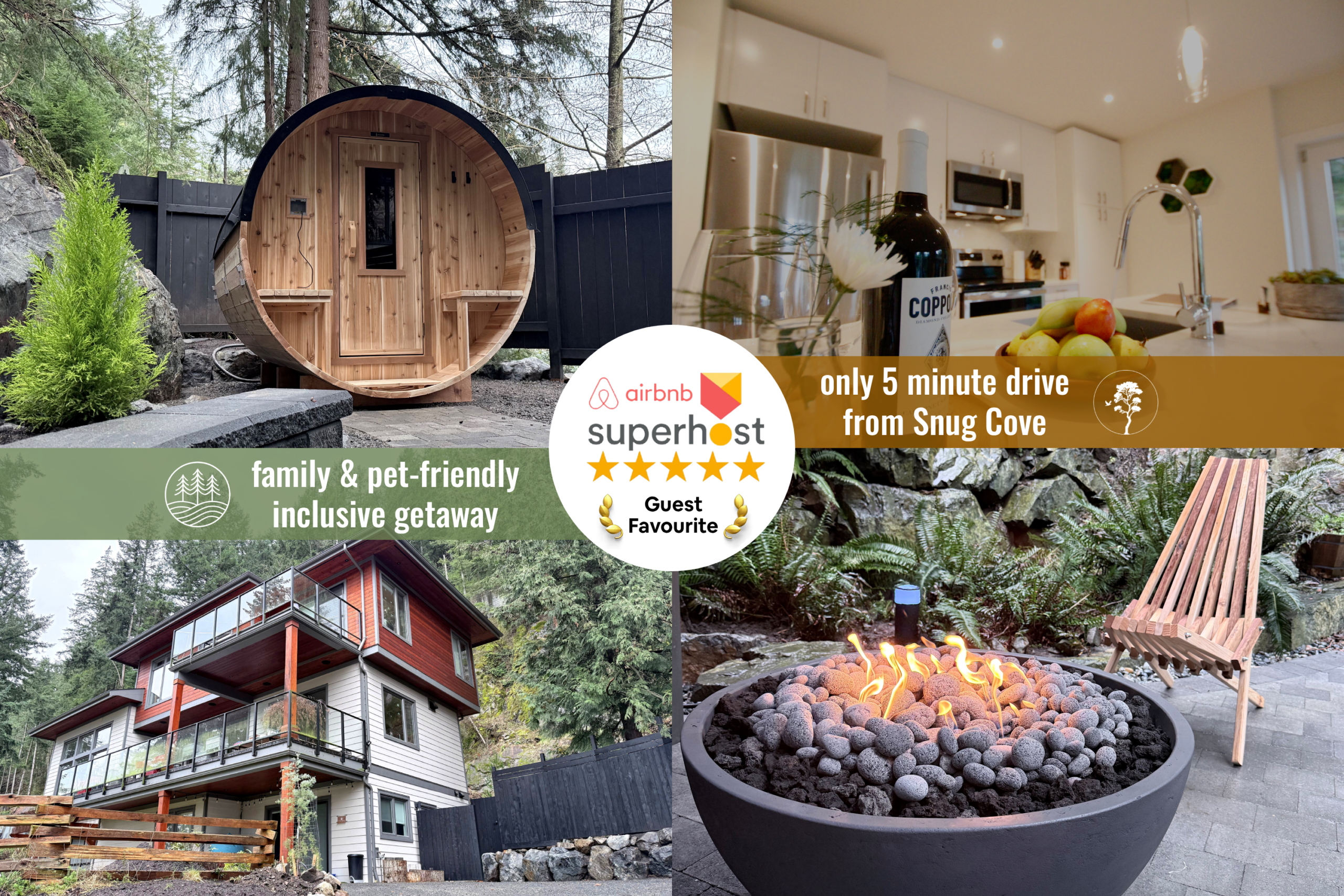Your overnight Bowen Island getaway is anchored by our 5-star, 2-bedroom residential suite. With over 150 perfect reviews, the suite offers: