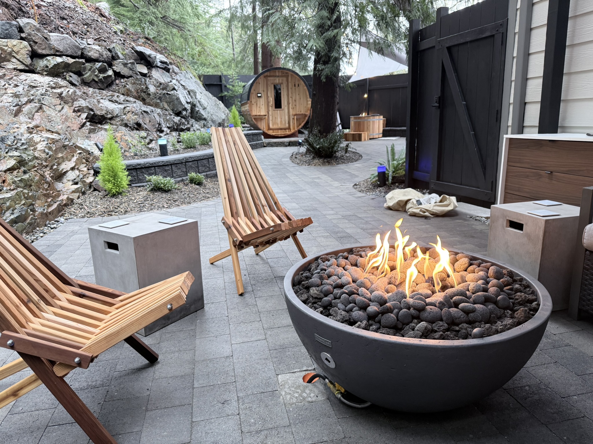 Finally, your integration occurs around the DreamCast Oasis 33 fire bowl. This premium architectural piece provides consistent, clean-burning warmth, allowing your body to stabilize its temperature in a state of deep “afterglow” while you listen to the sounds of the surrounding forest.